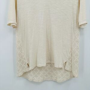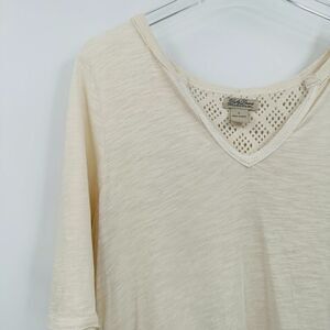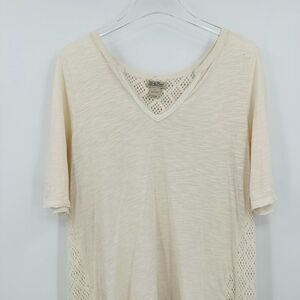 Lucky Brand Size Large Cream V Neck Short Sleeve Boho Knit Back T Shirt Top