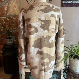 Lucky Brand Size Large New Tunic Sweater Cardigan Wool Blend Camo Tan Neutral