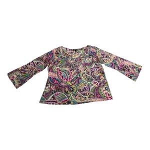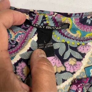 Lucky Brand Size Large V Neck Paisley Long Sleeve Blouse Prior Black