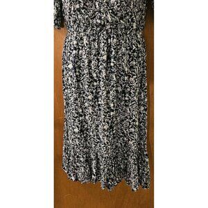 This beautiful Lucky Brand maxi dress is perfect for any occasion. The dress features a blue and white leaf pattern that adds a colorful touch to your wardrobe. It has a V-neckline, short sleeves, and a snap closure for easy wear. The dress is made of a lightweight and machine washable polyester and viscose blend, making it perfect for travel, workwear, and everyday wear.