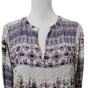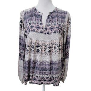 Lucky Brand Size M Boho Patterned Babydoll Blouse, Gently Used Condition