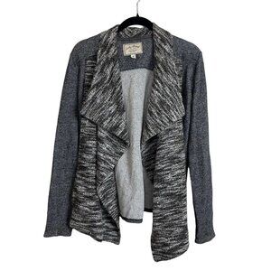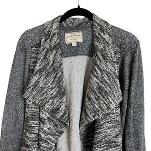 Lucky Brand Size M Open Front Knit Cardigan Gray Heather Mix Pattern Sweater