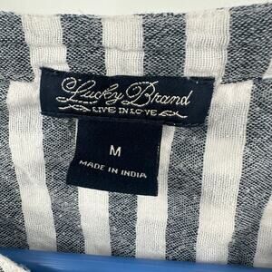 Lucky Brand Size Medium V-Neck Long Sleeved Blouse Gray Striped embroidered