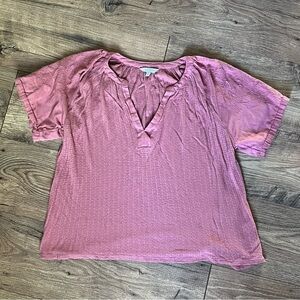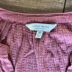 Lucky Brand Size Medium Waffle Knit Pink Popover Embroidered Linen Blend Blouse