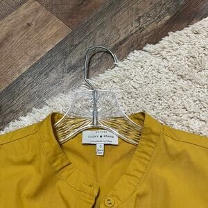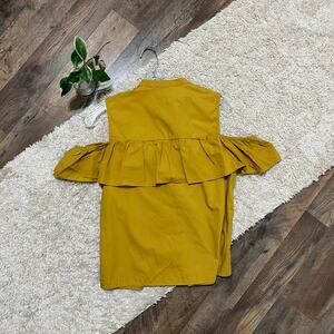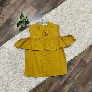 Lucky Brand Size Small Mustard Yellow Ruffle Button Down Cold Shoulder Blouse