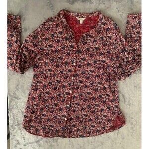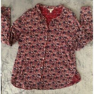 Lucky Brand Women's size XL/TG red blue and white print button down blouse. Great for casual wear. Fits more like a size large. Retro Peasant Cowgirl Western Hippie 90's Grunge Boho