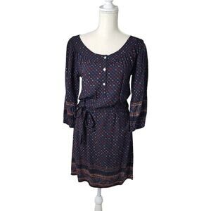 Lucky Brand Size XS Boho Style Navy Multicolored Print Dress