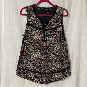 Lucky Brand Sleeveless Crochet Accent Floral Navy/Yellow