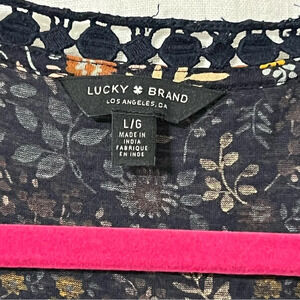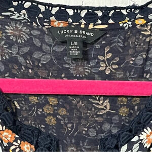Lucky Brand Sleeveless Crochet Accent Floral Navy/Yellow