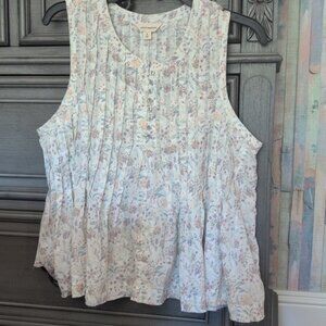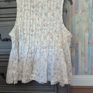 Lucky Brand Sleeveless Floral Blouse - Cream and Pink