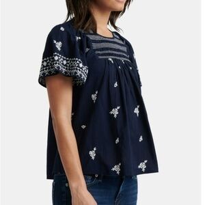 Lucky Brand Smocked Embroidery Blouse Top Sz XL