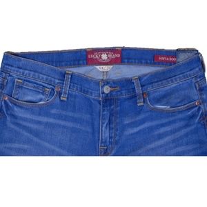This pair of women's Lucky Brand Sophia Boot jeans is size 14/32 and NWT! The 99% cotton and 1% spandex fabric has a medium wash with whiskering. The jeans feature belt loops, a zip fly with "Lucky You",, two front pockets, two back pockets, and a front change pocket. No tears, stains, or flaws were noted!