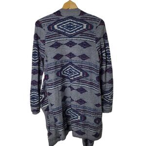 Lucky Brand Southwestern Boho Print Open Front Wool Blend Cardigan Size M