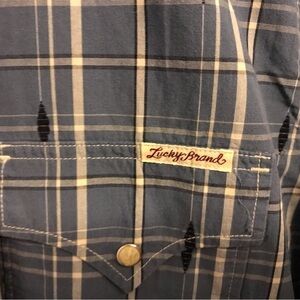 Lucky Brand Sportswear pearl button down shirt in great blue and white colors in excellent shape