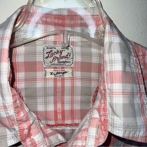 Lucky Brand Sportswear Western Style Pink Plaid Snap Front Cotton Shirt Size XL