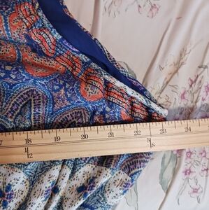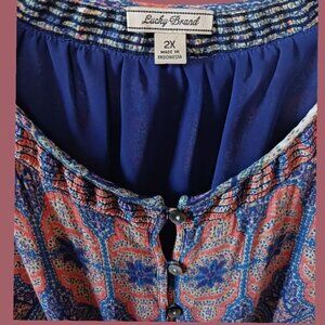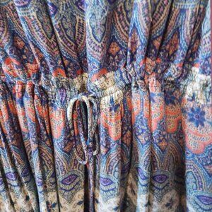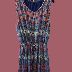 This sleeveless Lucky Brand dress features a vibrant boho print in a lightweight fabric. The elastic waist provides a comfortable fit, suitable for casual outings or relaxed occasions.is in great condition from smoke and pet free home0529