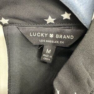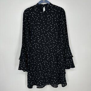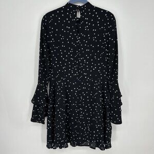 Lucky Brand Star Print Mini Dress M Long Bell Sleeves A Line Black