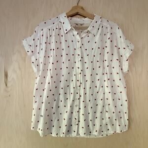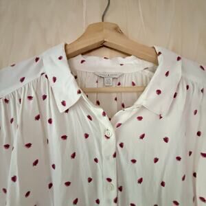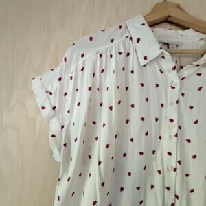 Lucky Brand Strawberry Top Button Down Roll Sleeve Camp Shirt L Large