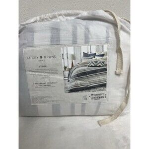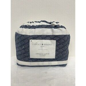 Lucky Brand Stripe Cotton FULL / QUEEN Duvet & Shams Set Navy / White