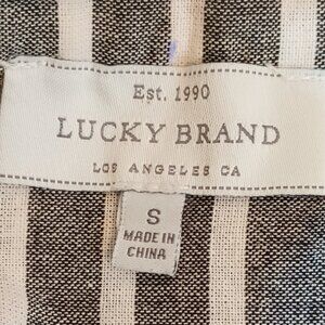 Lucky Brand Stripe Embroidered Top S Short Sleeved V-Neck Gray White Boho Tunic