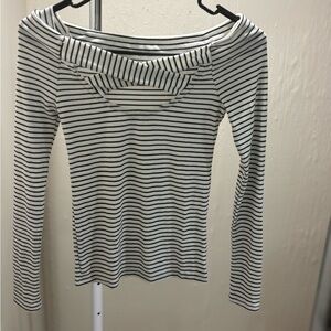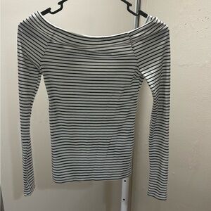 Lucky Brand Stripe Off Shoulder Ribbed Top Long Sleeve Criss Cross Back Size XS