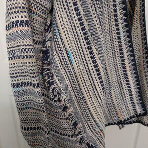 Lucky Brand Womens Blue Stripe Boho Fringe Oversized Relaxed Open Cardigan Sweater Jacket Size Large