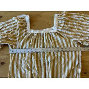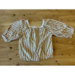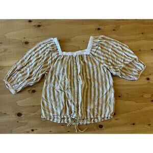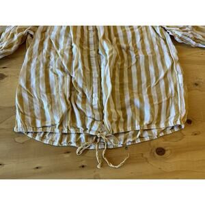 Lucky Brand Striped Blouse Women Medium Yellow Tie Front Boho Button Down