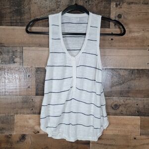 Lucky Brand Striped Tank Top Button Sleeveless Casual White Blue Size S