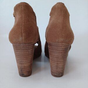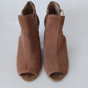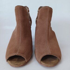 Lucky Brand Suede Ankle Booties Reevas Leather Peep Toe Wedge Womens 7.5