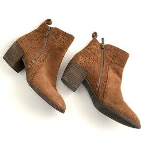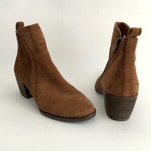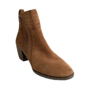 Lucky Brand Suede Lashiya Bootie Perforated Block Heel Brown 7