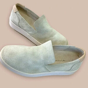 Lucky Brand Suede Leather Slip On Loafer Sneakers Women Size 8M Silver Cloud