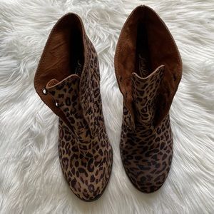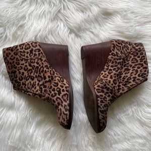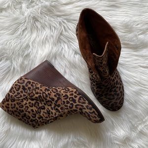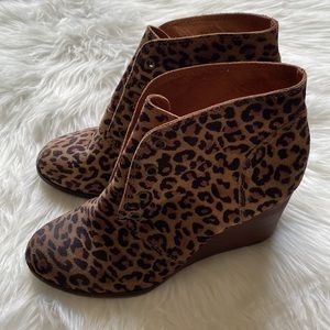 Lucky Brand Suede Leopard Wedge Booties Size 7