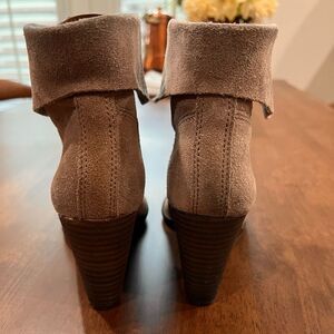 Lucky Brand Suede Tan Wedge Ankle Booties Women’s Size 7 Lace-Up Foldover Boots