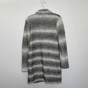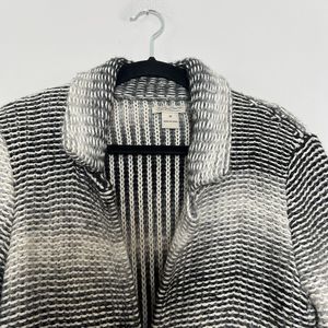 Lucky Brand Sweater Cardigan Black Gray White Lagging Look Wool Blend