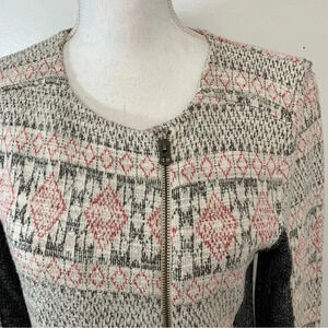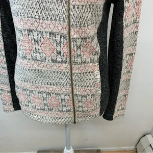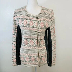 Lucky Brand Sweater Jacket Woman Medium Geometric Asymmetrical Zip Long Slv