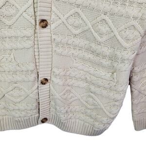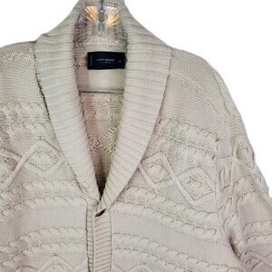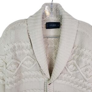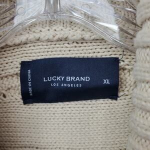 Lucky Brand Sweater Mens Large Cardigan Chunky Cable Knit Fisherman Cream Sz XL