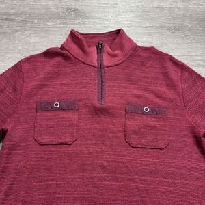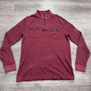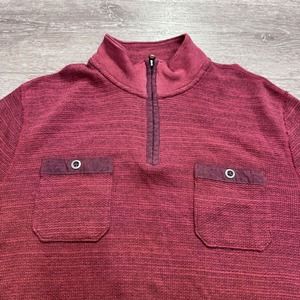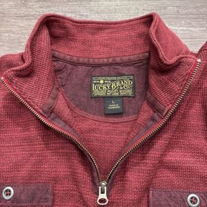 Lucky Brand Sweater Mens Large Red 1/4 Zip Knit Pullover Double Pocket Pullover