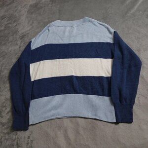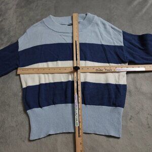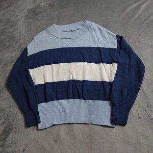 Lucky Brand Sweater Men's S/P Blue White Striped Colorblock Crew Neck Pullover