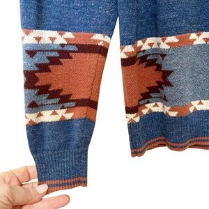 Lucky Brand Sweater Men’s Size Small Blue Southwestern Cotton Knit Crewneck