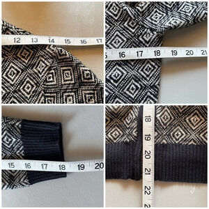 Lucky Brand Sweater Sz S Black Beige Geo Knit Ribbed Full Zip Bomber Sweater