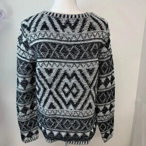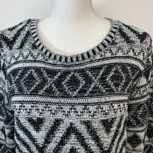 Lucky Brand Sweater Woman Large Black White Geometric Print Long Sleeve Boxy