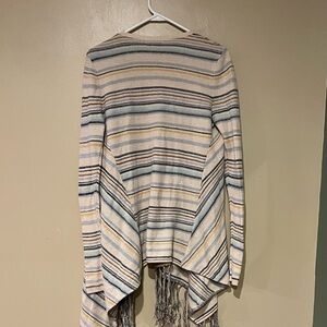 Lucky Brand Sweater Women M Beige Open Cardigan Fringe Southwestern Boho Knit