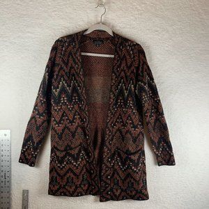 Lucky Brand Sweater Women's Small Brown Aztec Ikat Knit Open Front Cardigan 7286