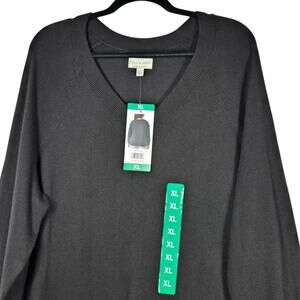 Lucky Brand Sweater Womens XLarge Jet Black V-Neck Raglan Pullover Knit Soft NEW