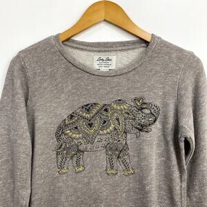 Lucky Brand Sweatshirt Women's Size Small Gray Softest Knitwear Elephant Print