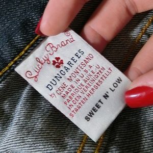I'm not even sure these jeans have ever been worn, I do not see any signs of wear on them at all. They have the shamrock pockets and zipper that says "lucky you" on the inside. I would say these jeans are boot cut jeans.