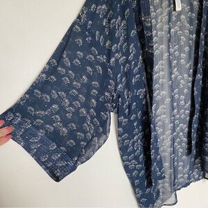 Lucky Brand Swim Kimono Coverup Navy Cream Vacation Beach Sheer