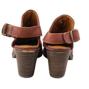 Lucky Brand Sz 6M Odenah Leather Red Rust Block Heels Bootie Peep Toe Sling Back