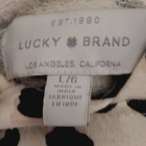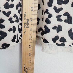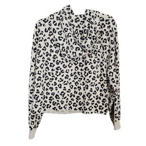 Lucky Brand Sz Large Women's Hooded Cropped Shirt Rolled Hem Animal Print Cream
