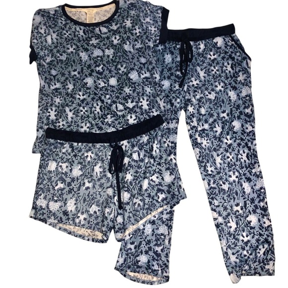 Lucky Brand Sz M 3Piece Pajama Bundle Soft Cozy Printed Blue Abstract Floral